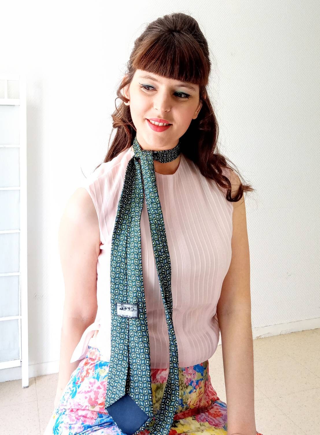 In order for customers to see the best look of an item on a person, I pose with each items. For large items, I add a belt or a small needle on the back so that the item is my size on the photos .