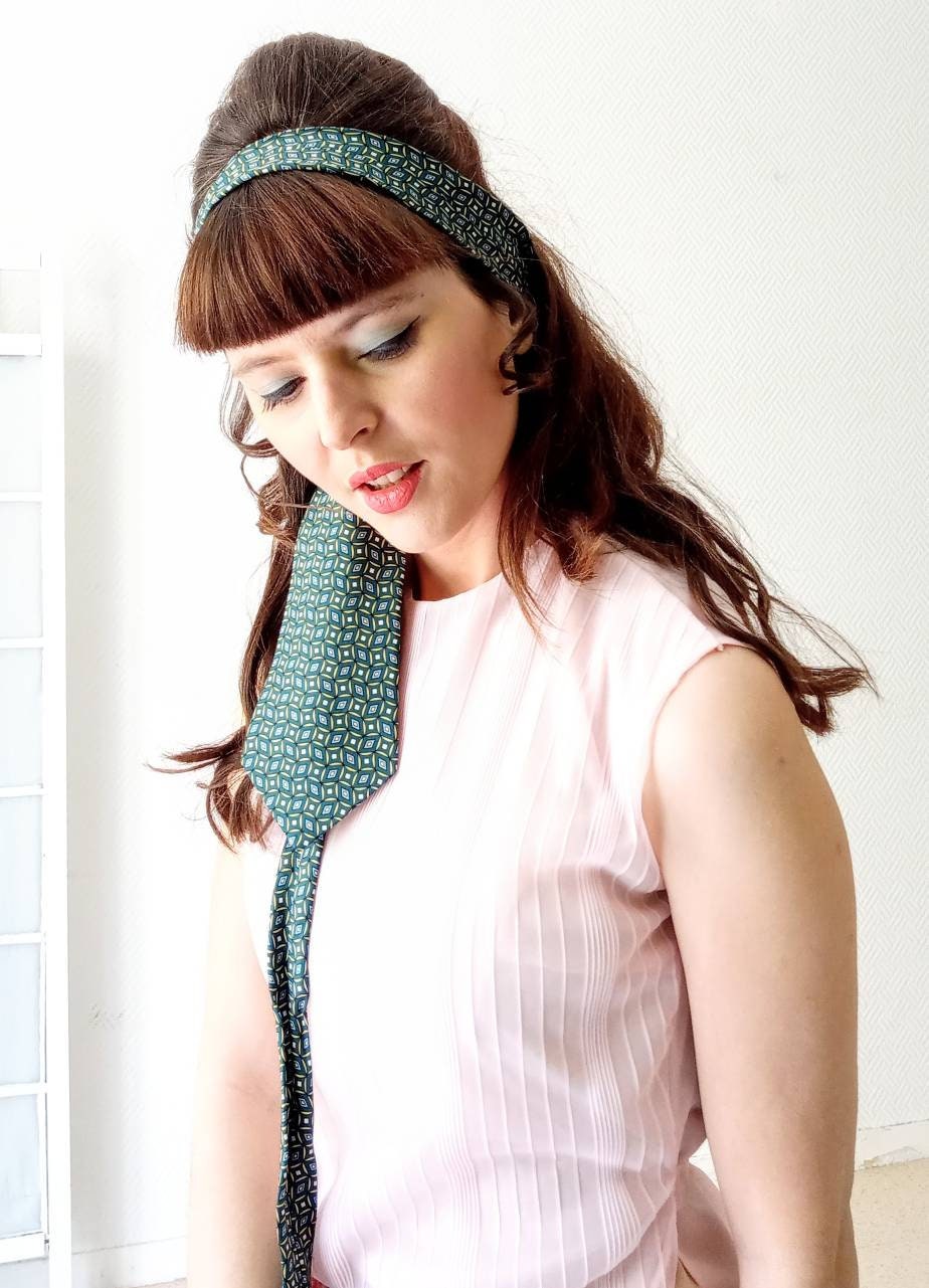 Superb vintage tie 100% silk, psychedelic geometric print, style inspired by the 60s, made in the 80s/90s by the brand DERBY, green and yellow colors, perfect condition.